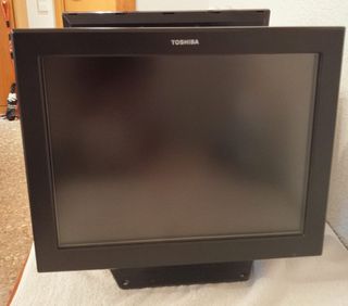 TPV Toshiba con pantalla para cliente. - Marca: Toshiba - Tipo: TPV (Terminal Punto de Venta) - Configuración: Doble pantalla (una principal y una secundaria para el cliente) - Prodente de Restaurante TGB The Good Burger, funcionando perfectamente.