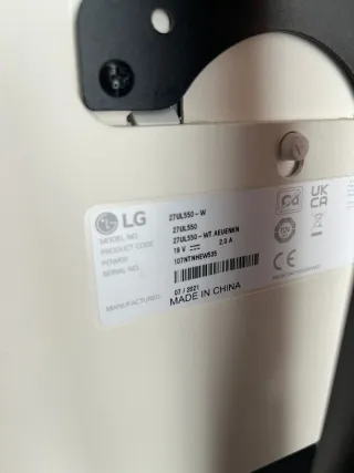 Pantalla LG en color blanco con soporte negro - Diseño moderno y elegante. - Base estable para colocar en cualquier superficie.