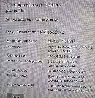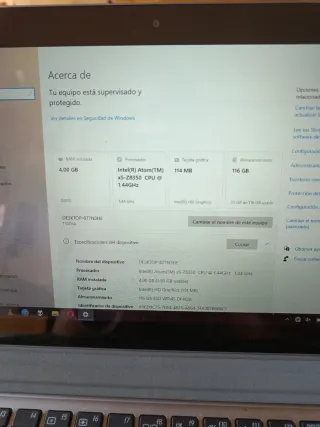 Pc tablet con pantalla táctil de 4 GB de RAM y 116 GB de almacenamiento. Puerto USB 3.0 y HDMI. Ranura para micro SD.