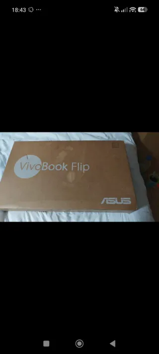 Portátil Asus VivoBook Flip en caja. - Modelo VivoBook Flip. - Caja de cartón color marrón. -se hace tablet pantalla táctil