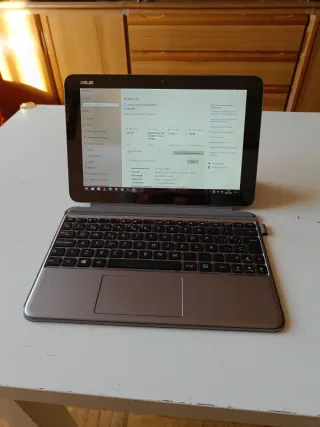 Tablet Asus con sistema operativo Windows. Su diseño combina tonos plateados. - Pantalla de alta resolución. - Teclado QWERTY. - Puerto usb c - lector micro sd -incluye cable cargador -características en las fotos... procesador, ram, disco duro
