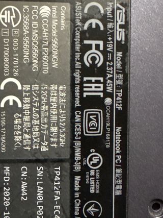 Pantalla táctil para portátil Asus modelo TP412F. Va el portatil entero, tiene fallo de placa.. no enciende pero teclado y sobre todo la pantalla tactil estan en perfectas condiciones.. para usar como piezas