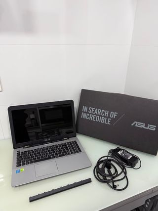 Portátil ASUS F555L en color plata y negro. Incluye cargador y batería. Tiene que estar enchufado con el cable de ahi su precio. - Pantalla de 15.6 pulgadas. - Teclado numérico integrado. - Diseño elegante y funcional.