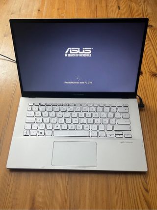 Portátil ASUS VivoBook en buen estado de funcionamiento. • Pantalla de 14 pulgadas (cambiada en 2022). • Procesador Intel. • Teclado QWERTY español. • Ligero y cómodo de transportar. IMPORTANTE – LEER ANTES DE COMPRAR: • Incluyo el cargador como regalo, ya que a veces no hace buen contacto. • Funciona algo lento por la antigüedad (comprado antes del COVID), pero cumple perfectamente para tareas básicas. • Tecla CTRL partida, aunque funciona correctamente. • Batería con una autonomía aproximada de 2,5 horas. Lo vendo porque necesito uno más potente para el trabajo. Recomendado para estudiantes y/o uso doméstico.