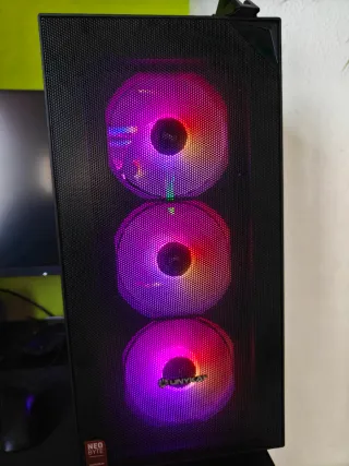Torre de PC de alto rendimiento, ideal para gaming y tareas exigentes. Cuenta con iluminación RGB personalizable. - Tarjeta gráfica Gigabyte GeForce RTX 5070 Ti 16GB - Refrigeración líquida con pantalla LED. - Múltiples ventiladores RGB -Procesasor AMD 7800x3D -Placa base ASUS B650E MAX GAMING WIFI -Memoria ram DDR5 32GB -Disco duro 2 TB Solo tiene 2 semanas de testeo con factura de todos los componentes.