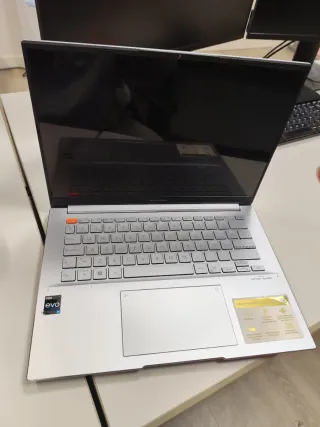 Portátil ASUS Vivobook con pantalla OLED y procesador Intel Core i7 de 12ª generación + bateria nueva. - Diseño elegante en color plata. - Teclado con detalles en naranja. - Certificación Intel Evo. - Sonido Harman Kardon.