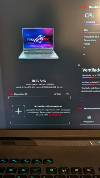 Portátil ASUS ROG en color gris. Ideal para gaming y tareas exigentes. Procesador i7 13th generación,32 GB DDR 5,1Tb SSD,RTX4070 8 GB . Pantalla resolución 1980*1200 píxeles. y 166hz de refresco.Garantía hasta 2026/08/24.Tengo factura,único propietario.Dis Estado 10/10 siempre usado cerrado enchufado a la corriente con un monitor externo.El trackpad y el teclado sin uso,igual que nuevo.Windows 11 pro instalado y con su serial. Vendo por falta de uso. Dispongo del embalaje original.