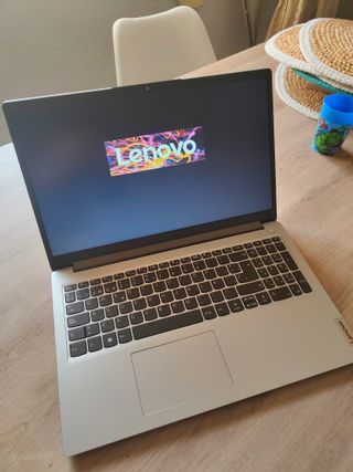 Ordenador portátil Lenovo en color gris. - Pantalla de 15.6 pulgadas. - Teclado numérico integrado. - Incluye cargador.