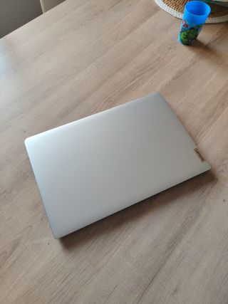 Ordenador portátil Lenovo con acabado plateado. - Con cargador - Pantalla de 15.6 pulgadas. - Teclado numérico integrado. - Diseño elegante y moderno.