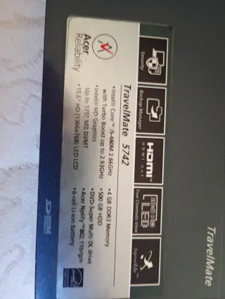 Ordenador portátil Acer TravelMate 5742 en color negro. Ideal para tareas diarias y ofimática. - Procesador Intel Core. - Pantalla de 15.6 pulgadas. - Incluye cargador. -raton USB -alfombrilla negra -una placa para acomodar el ordenador al tamaño que quieras.