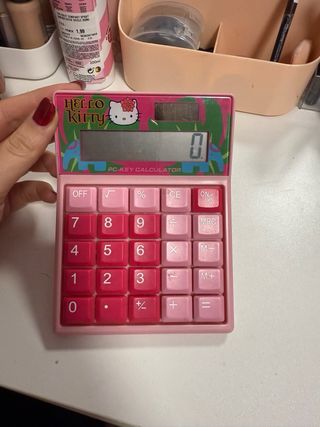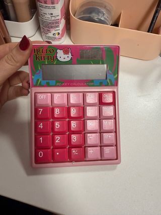Linda calculadora de Hello Kitty con diseño colorido y femenino, ideal para niñas, estudiantes o fans del personaje. Perfecta para la escuela, la oficina o uso en casa. 🧮 Características: • Diseño original de Hello Kitty • Color rosa con detalles decorativos • Teclas grandes y cómodas • Pantalla amplia de fácil lectura • Funciones básicas: suma, resta, multiplicación, división, porcentaje y memoria • Tamaño práctico y portátil • En buen estado (según imágenes) 🎀 Ideal como regalo escolar, para tareas o como accesorio de escritorio. Una calculadora funcional y adorable que hace las matemáticas más divertidas 💖