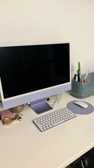 Impresionante iMac M1 de 2021 en el llamativo color Lavanda. Este ordenador todo en uno combina un diseño elegante con un rendimiento potente. - Chip M1 de Apple. - Pantalla Retina de 24 pulgadas. - Diseño delgado y moderno. En muy buen estado ya que no le he dado uso prácticamente. Se entrega en caja original.