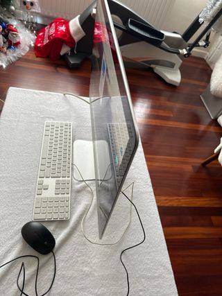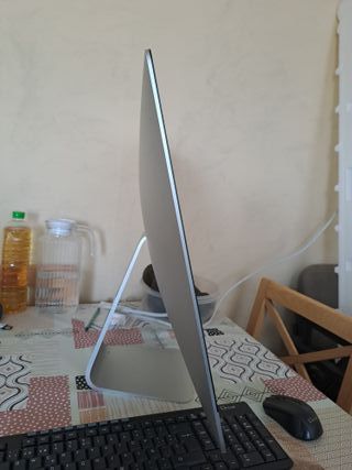 Ordenador iMac de 27 pulgadas con procesador Intel i7 y Magic Trackpad. - Pantalla de 27 pulgadas. - Procesador Intel Core i7. - Incluye Magic Trackpad. Un equipo potente para su época, ideal para coleccionistas, amantes de Apple clásico, restauradores, uso offline, estudio, música, servidor local o simplemente como pieza vintage funcional. ⚠️ Estado / Importante leer • El soporte trasero de la pantalla está roto (ver quinta foto). • Actualmente se mantiene estable con un plástico improvisado, o el comprador puede sujetarlo / repararlo como prefiera.