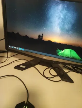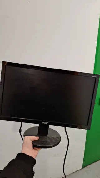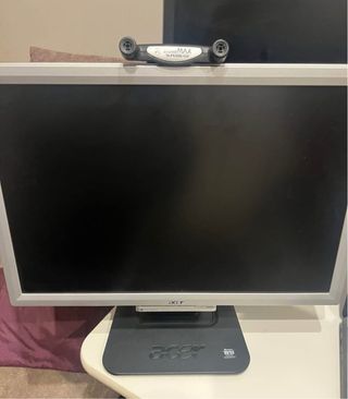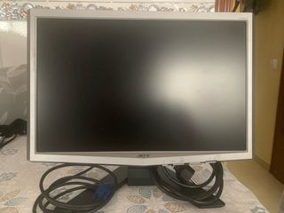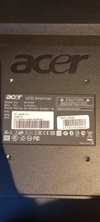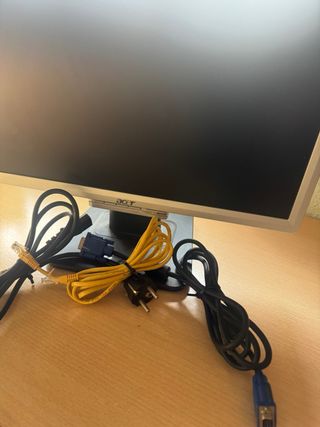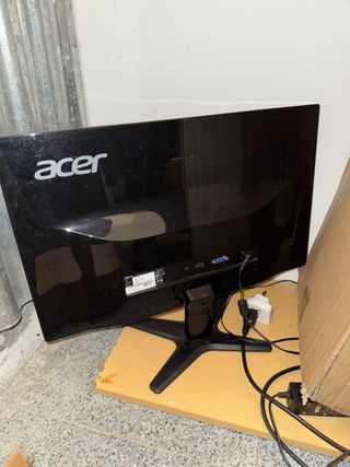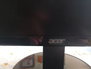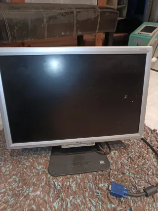 Pantalla de ordenador Acer. Funciona perfectamente. Notas: 1. Enchufe americano, trae adaptador. 2. La base hace que se incline un poco hacia adelante, para evitar que se caiga, un post-it le va perfecto o cualqier papel doblado.