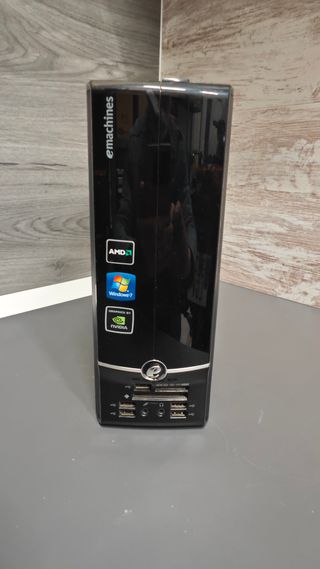 Ordenador completo Slim, Marca ACER eMachines, Athlon II doble núcleo. 4 Gb. de RAM DDR3. Disco duro 500 Gb. Lector grabador de DVD/CD, lector de tarjetas. Gráfica dedicada Nvidia GT610 de 2 Gb. Ordenador totalmente revisado, aspirado, con pila y pasta térmica nueva, formateado con Windows 7 Ultimate, Office, Acrobat profesional, programas para ver películas y cualquier uso del ordenador. Ideal para conectar a la televisión del salón. Llegar a casa, conectar y utilizar Se regala una pantalla plana, un teclado y un ratón (Pueden ser diferentes a los de la foto) Puedes ver otros ordenadores en mi perfil.