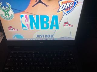 Ordenador portátil Acer de color negro - Pantalla con temática NBA y zapatillas. - Teclado QWERTY en español. -precio negociable