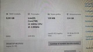 - Procesador: Intel Core i5-4590 a 3.30 GHz. - Memoria RAM: 8 GB (7.86 GB utilizables). - Tarjeta Gráfica: NVIDIA GeForce GTX 960 (4 GB) y Intel HD Graphics 4600 (113 MB). - Almacenamiento: SSD KINGSTON 447 GB, SSD Samsung 850 EVO 250 GB, SSD TEAM L7 EVO 120 GB. - Sistema Operativo: 64 bits, procesador x64. - Sin Pantalla