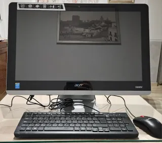 Modelo z3-705 Ordenador de sobremesa Acer con pantalla de 21.5 pulgadas. - Diseño todo en uno (All-in-One). - Acabado en negro y plateado. - Pentium i3 de 5 generación - 8gb de ram (libre un zócalo para ampliar). - ssd de 256gb. - recién actualizado, aspirado y cambio de pasta térmica. - rápido y silencioso. - Sirve como monitor (entrada hdmi). Perfecto para oficina, negocio, estudios, enchufar consolas, ocupa poco espacio. Pc, no imac, no apple, full HD, AIO, NO TACTIL, windows, DVD,