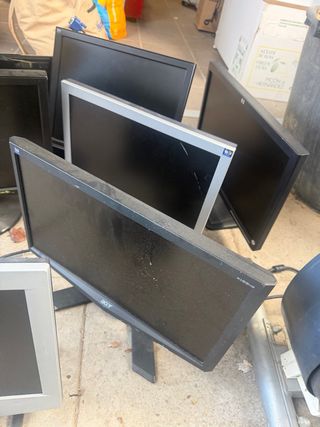 Conjunto de 7 monitores de ordenador y teclados. - Monitores en color negro y plateado. - Teclados negros. 6 pantallas lcd