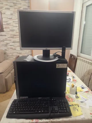 Vendo pantalla y torre de ordenador (modelo del 2011) en estado estético impoluto. Es un equipo antiguo, por lo que tarda un poco en arrancar/encender. Hay que tener paciencia al inicio, pero una vez ha cargado el sistema, funciona bien y estable. Muestro vìdeo. ✅ Ideal para: Uso básico: navegar por internet, usar Word/Excel, ver películas, escuchar música o para estudiantes de primaria/personas mayores. (No apto para juegos modernos). El precio incluye TODO: Torre, pantalla, teclado y Ratón inalámbricos Antena USB Wi-Fi TOTALMENTE NUEVA (en su caja precintada sin abrir) para que tengas internet sin cables, altavoces, cámara Web