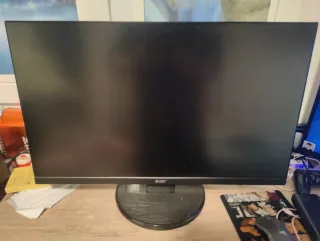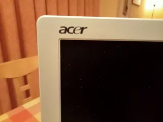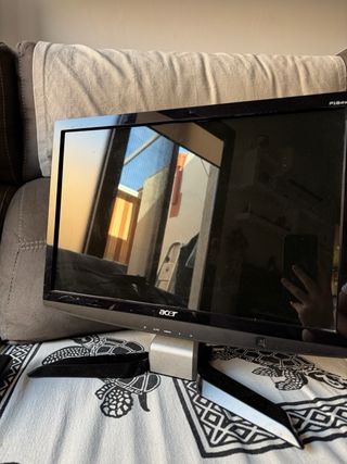 Pantalla de ordenador Acer. Funciona perfectamente. Notas: 1. Enchufe americano, trae adaptador. 2. La base hace que se incline un poco hacia adelante, para evitar que se caiga, un post-it le va perfecto o cualqier papel doblado.