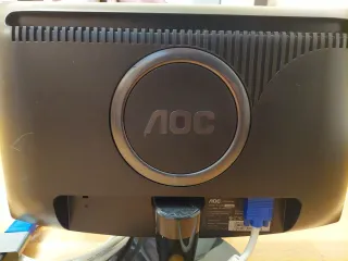 Monitor de ordenador AOC en color negro. El modelo de la pantalla es AOC E2470SWDA. - Pantalla plana. - Base redonda. - Incluye cables de conexión. - Solo usado una vez. No tiene acceso al cable HDMI, sino al cable DVI.