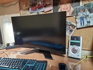 Se escuchan ofertas. Posibilidad de comprar junto al ordenador de mi perfil. Perfecto estado, cuidado con mucho mimo, sin arañazos ni defectos. Listo para usar 🔹 Especificaciones principales Pantalla : 26,9” QLED Curvo (1500R) Resolución: QHD 2560x1440 Frecuencia de refresco: 240Hz (ideal para gaming competitivo) Tiempo de respuesta: 1 ms Compatibilidad: G-Sync Compatible y FreeSync Premium Pro Brillo máximo: 600 nits Contraste: 2500:1 Conectividad: DisplayPort 1.4, 2x HDMI 2.0, USB Hub Diseño: Curvo, ergonómico, ajustable en altura e inclinación Etiqueta: Samsung Odyssey G7 27”, QLED, Curvo 1500R, 240Hz, G-Sync Compatible, Gaming