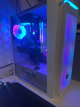 Ordenador de sobremesa BLANCO con iluminación RGB prácticamente nuevo (verano 2025) IDEAL PARA GAMING Características: - PROCESADOR: AMD Ryzen 5 5500 4.2GHz Socket AM4 Tray - PLACA BASE: MSI A520M-A PRO Socket AM4 - RAM: Team Group T-Force Delta RGB 16GB 2x8GB 3600MHz CL18 XMP Blanco - TARJETA GRÁFICA: Asus Dual RTX 5060 8GB OC GDDR7 DLSS4 (solo esto vale 350/400€) - ALMACENAMIENTO: Western Digital Blue SN5100 1TB PCIe Gen4 x4 NVMe SSD - ALIMENTACIÓN: Gamdias Helios E1-600 Pro 80 Plus 600W ATX12V v2.4 - EXTRAS: Tarjeta anclada a la placa base para funcionalidad Bluetooth y WIFI. Monitor Philips (100 Hz) y MSI (180 Hz)