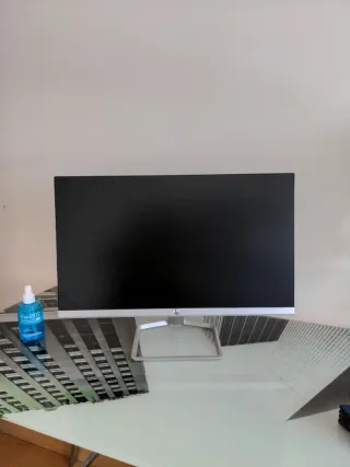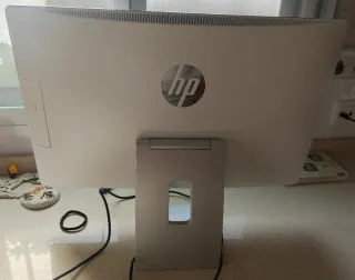 Pantalla de ordenador HP en color blanco. - Diseño moderno y elegante. - Soporte ajustable. - Puertos de conexión en la parte trasera.