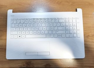 Piezas para portátil HP 15-BW y otros modelos compatibles con este. - Carcasa blanca con Teclado QWERTY en español (con algunas roscas de los anclajes de tornillos reparadas, tal como se ve en las fotos). Incluye tornilos de anclaje de las bisagras de la pantalla. - Carcasa inferior blanca con TARA en una esquina, tal como se ve marcada en una foto. Van incluidos los tornilos de sujeción de esta carcasa (metidos en una bolsa de plastico).