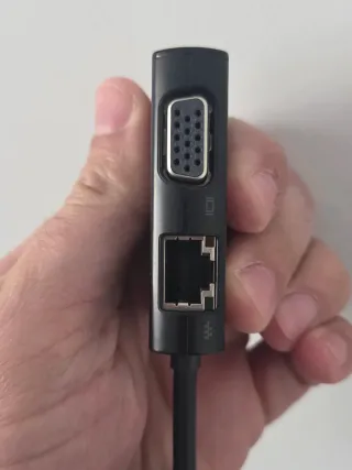 Adaptador para conectar tu ordenador portátil HP a una pantalla. - Conector de entrada para portátil. - Salida para pantalla.