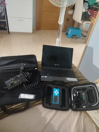 Ordenador portátil Packard Bell en color negro. Incluye accesorios para su uso. - Cargador universal con varios adaptadores. - Reproductor multimedia azul. - Funda de transporte negra. - Accesorios para el reproductor multimedia. -windows7 ADVERTENCIA ⚠️ TIENE EL CRISTAL DE LA PANTALLA ROTA HABRIA QUE CAMBIARLO, por lo general todo va bastante bien, solo habría que cambiar el cristal de la pantalla y supongo que actualizarlo dado a qué lleva años sin usarse.