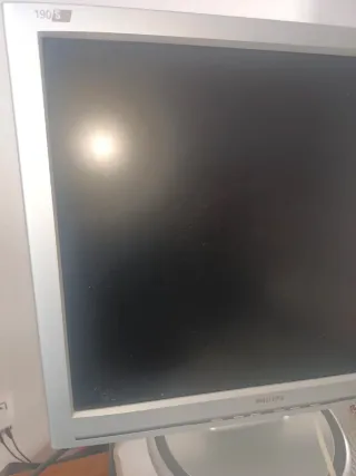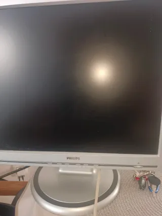Monitor de ordenador Philips en color negro. - Pantalla de 19 pulgadas. - Soporte ajustable. - Cables de conexión incluidos. Hace dos días se fue la.luz en casa y ya no.0rende.se queda el display parpadeando asta ese día todo.correcto si sabes arreglarlo cómpralo