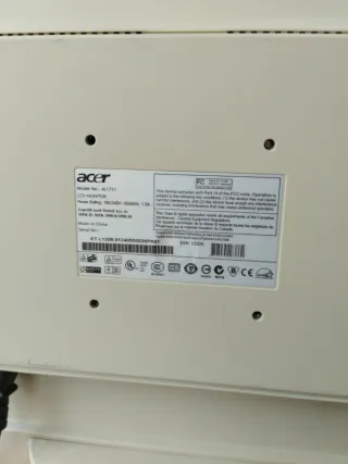 Monitor de ordenador Acer con acabado plateado y marco negro. - Pantalla de 19 pulgadas. - Diseño moderno y elegante. Entrega en persona,para comprobar estado del producto.👌😉 ¡SOLO EN ALBACETE CAPITAL!.
