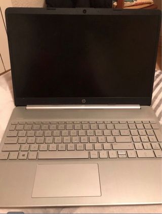 Ordenador portátil HP 15s en color plata. - Diseño elegante y moderno. - Pantalla de 15 pulgadas. El unico fallo del ordenador es que la pantalla se le queda pillada todo lo demás funciona perfectamente