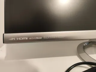 Monitor Asus de 27 pulgadas con tecnología IPS. -Tiene altavoces integrados de la marca Bang & Olufsen. -El panel es tecnologia LED. -Los botones son táctiles y se encuentran en la parte baja -Siempre ha sido limpiado con productos específicos de pantallas, por lo que no está ahumada. -Tiene posibilidad de 2 salidas HDMI simultáneas y VGA. -Salida y entrada de audio por jack. -La peana está impecable e incluso el cuello tiene su protector. -El único desperfecto visible es un pequeño raspón encima del logo trasero de Asus (se aprecia en fotos) -El monitor se apaga sólo al dejar de recibir datos (p.e. al apagar el PC)