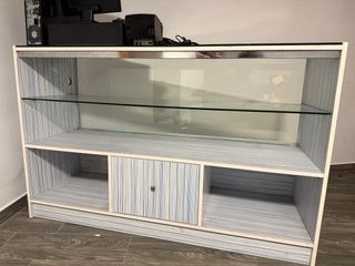 Mostrador de tienda con ordenador completo incluido. Ideal para negocios. Mostrador tienda: - Largo 150cm - Ancho 50cm - Alto 96cm TPV Completo: - Ordenador - pantalla - teclado y ratón usb - lector de precios - impresora de tickets 80mm No se incluye envío 🚚 ni instalación.