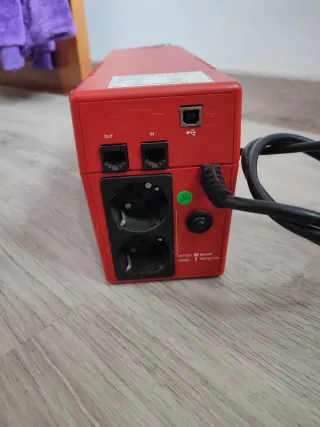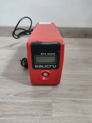 Sistema de alimentación ininterrumpida (SAI) Sai Salicru SPS 800 Soho. Soporta hasta 480W, con pantalla digital y conectividad con pc para controlar funcionamiento. No conservo caja. No sé ha usado apenas, era el repuesto de otro que finalmente se pudo reparar. No incluye batería, lo probé con ella pero estaba vieja y finalmente ya no cargaba. Cuestan 7-10€ aproximadamente. Tras varias preguntas de interesados, por si alguien la quiere, puedo incluir la batería. Carga a 11,6v, que debe ser menos de lo que necesita el sai para mantenerse encendido cuando no esté conectado a la red. - Color rojo. - Pantalla digital. - Botón de enc