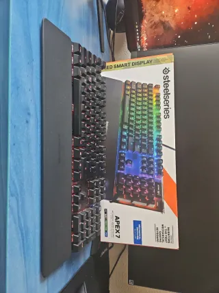 Teclado mecánico SteelSeries Apex 7 con retroiluminación RGB. - Switches Azules - Diseño elegante en color negro. - Teclas mecánicas para una respuesta rápida. - Retroiluminación personalizable en múltiples colores. - Reposamuñecas imantado - Pantalla OLED customizable - Rueda de acción - Layout AMERICANO Con sus manuales caja y todo, como nuevo. Vendo por no usar el ordenador. Entrego en mano en zona de Cáceres o envío por Wallapop Envíos. Cualquier duda, pregunta sin compromiso.