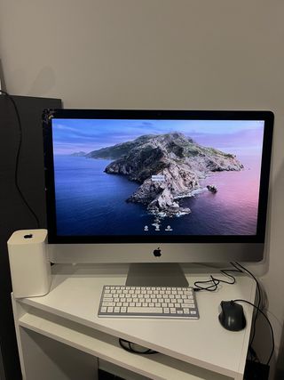 Ordenador de sobremesa Apple iMac de 27 pulgadas. - Diseño elegante en color plata. - Pantalla de alta resolución. iMac 27″ modelo 14,2 (Late 2013) Intel Core i5 3.4GHz + Disco externo 1TB nuevo (nunca lo he llegado a usar) + teclado inalámbrico (nuevo, no apple) + caja original + cable corriente. La pantalla (me lo tiró el perro al suelo. Casi me da un parraque), tiene una rotura en la esquina (no afecta la visualización). Sigo trabajando con él. Antes de mandar restauraré todo de fábrica. Vendo mi equipo por cambio en mi flujo de trabajo. Preferible venta en persona. Precio negociable.