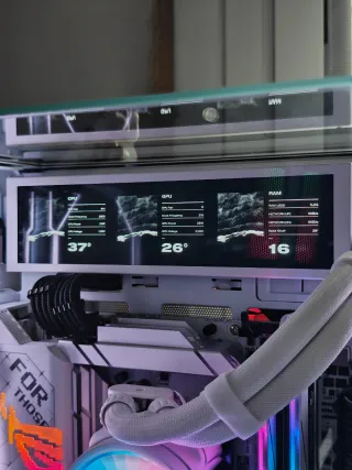 Pantalla de 8,8 pulgadas, se puede conectar a un puerto usb normal o a un usb interno en la placa base. Funciona con la aplicacion Turzx. Tiene pantallas intercambiables que muestran diferente info. Se puede personalizar. Se puede usar cinta de doble cara o un iman para fijarla.