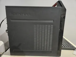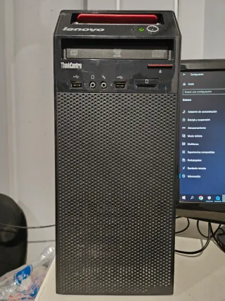 Ordenador de sobremesa Lenovo ThinkCentre en color negro con detalles en rojo. Es un equipo económico y silencioso, ideal para tareas diarias. Recién revisado y con la pasta térmica Thermaltake nueva. Con puertos USB frontales y lector de tarjetas. Windows 10 recién instalado. Pantalla no incluida, pero negociable. - i3-4130 3,4 GHz - 8 Gb RAM - 500 Gb HDD