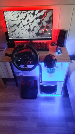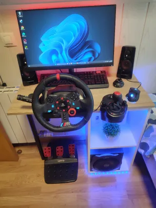 Pack completo para simulación de conducción. - Volante de carreras con pedales. - Palanca de cambios. - ordenador Asus prime B550M-A, con factura comprado en pc componentes -Altavoces Gaming trust, con bombo Gz trust. -Pantalla Lenovo fulHD -Teclado gaming con ratón -canles de 3 y 4 metros y también entrego los cables originales. TENGO LAS CAJAS DE TODO NO SE HACEN OFERTAS