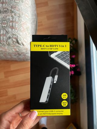 Adaptador multifunción para conectar tu ordenador USB-C a una pantalla. - Salida HDTV 4K. - 3 puertos USB. - Puerto de carga PD (Power Delivery).