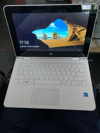 ordenador portátil HP en color blanco. Compacto y fácil de transportar. - Pantalla de 11 pulgadas. - Teclado QWERTY español. - Touchpad integrado.