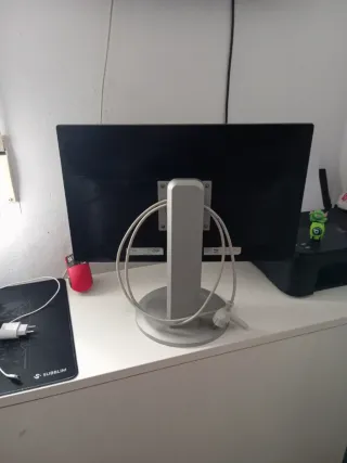 Pantalla de ordenador con un diseño moderno y elegante. - Marco plateado. - Base giratoria