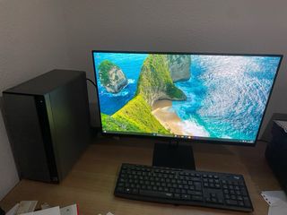 torre con grabadora lg y con un terabyte varios puertos usb para tarjetas sd ... pantalla lg y teclado logitech inalambrico con su ratón inalambrico también. funciona todo perfectamente