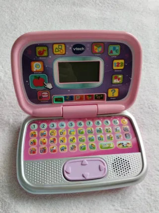 Ordenador infantil de la marca VTech en color rosa. Ideal para el aprendizaje de los más pequeños, en muy buen estado, funciona perfectamente, hay varias fotos donde se aprecia que está la pantalla encendida. - Pantalla con juegos interactivos. - Teclado con letras y números. - Botones de navegación y altavoces.