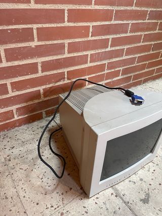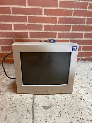 Monitor de ordenador TAY en color beige y gris. - Conexión VGA. - Botones de control frontales.