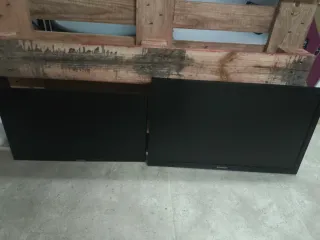 Dos pantallas de monitor para PC de la marca Samsung, una mas grande que la otra. Ambas funcionan correctamente y no tienen desperfectos No tienen pie, pero se da el soporte en el que van ambas puestas, es un brazo para dos pantallas que puede ir en un escritorio o alguna mesa enganchado. - Color negro ambas, marca samsung.